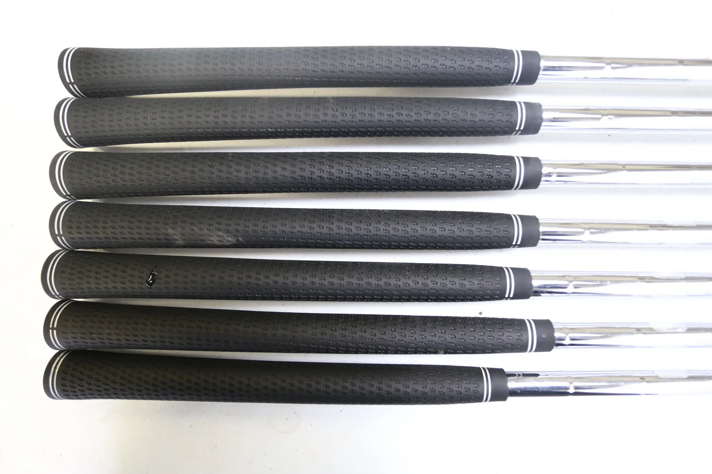 GOOD – This iron set is in good condition. There is average wear around the heads and on the faces of the clubs from regular use. There are very small markings and scratches along the shafts from normal use and storage. The grips are in good condition with some wear from regular use and storage. Please see pictures for more details.